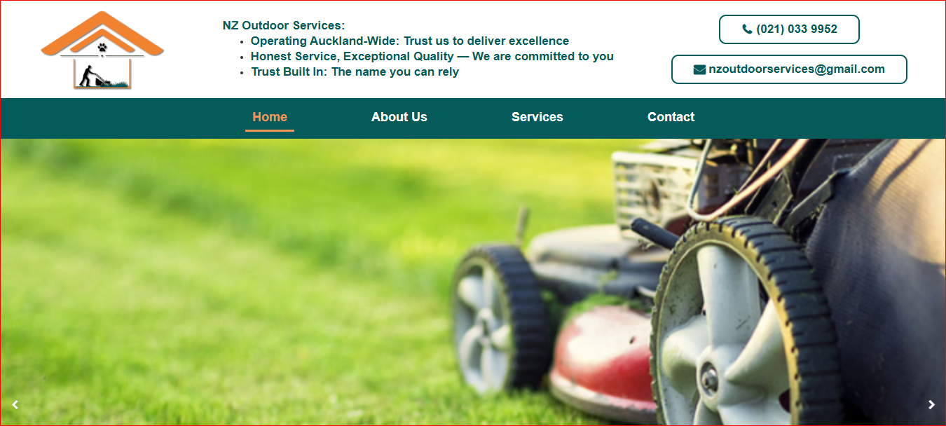 Modern website for an outdoor and home maintenance services company in New Zealand. Built to promote services and generate more customer inquiries.