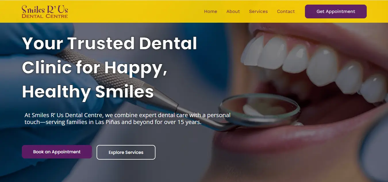 Professional dental clinic website for a trusted dental care provider in Las Piñas, Philippines. Designed to improve patient inquiries and provide a clean, user-friendly experience.