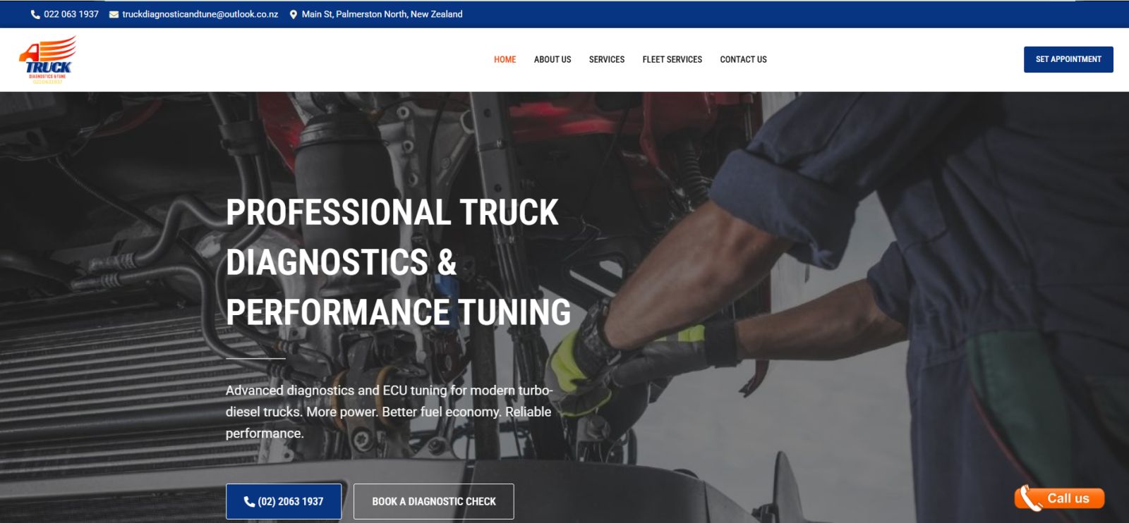 Professional website for a truck diagnostics and performance tuning company in New Zealand. Designed to showcase services and attract more vehicle owners and business clients.