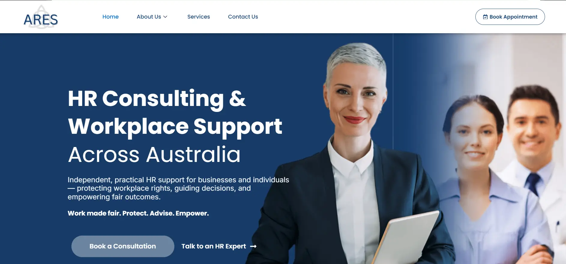 Professional website for an HR consulting company in Australia. Built to showcase services and attract more business clients.