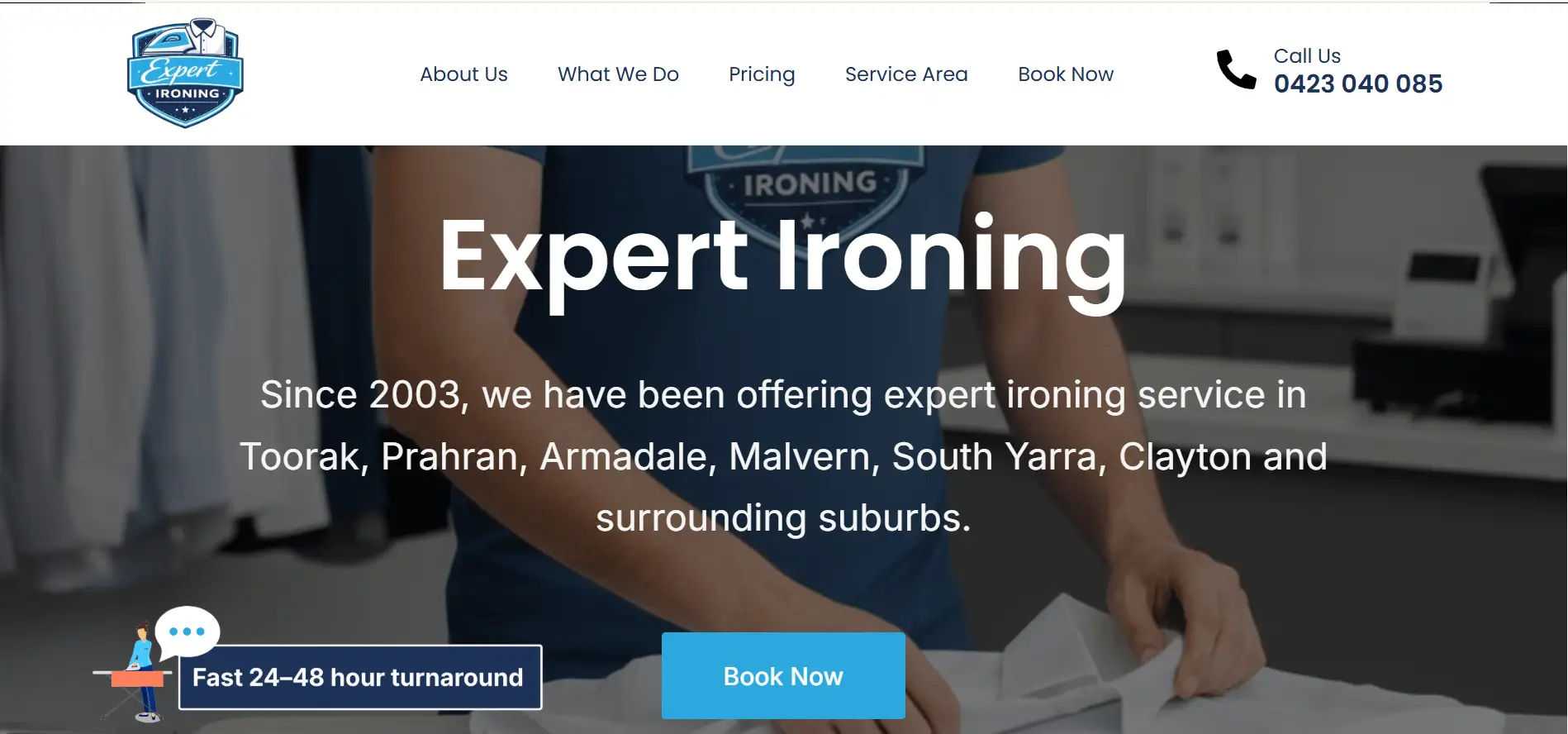 Professional website for a laundry and ironing services business in Australia. Designed to generate more customer inquiries and bookings.