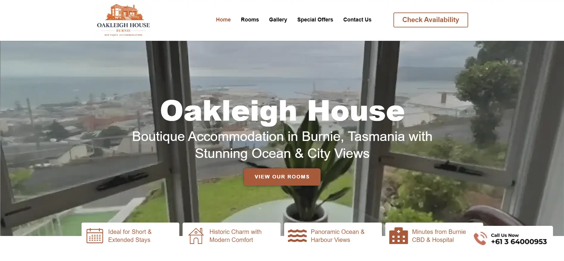 Modern website for a guesthouse and accommodation business in Australia. Designed to showcase rooms and increase bookings.