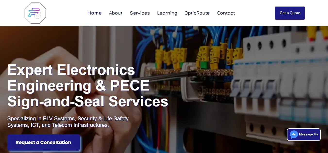 Modern website for an electronics engineering and technical services provider in the Philippines. Built to present services clearly and attract more clients for engineering projects.