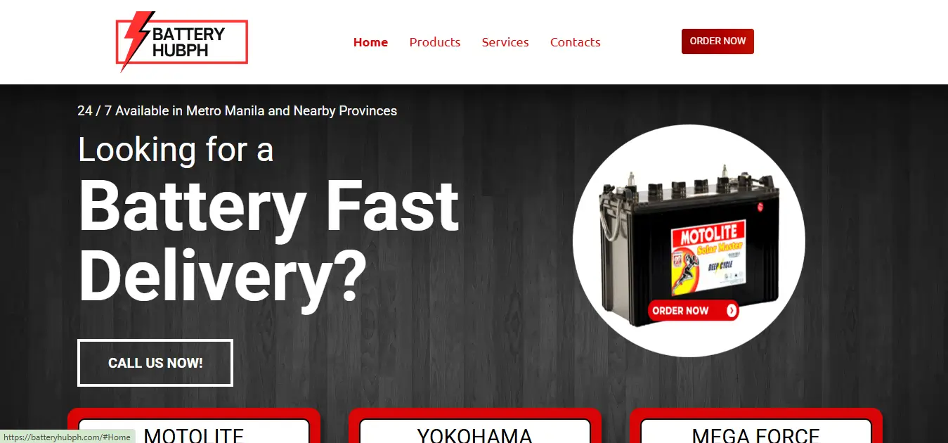 Professional website for a battery supply and delivery business in the Philippines. Designed to promote products and increase customer orders.