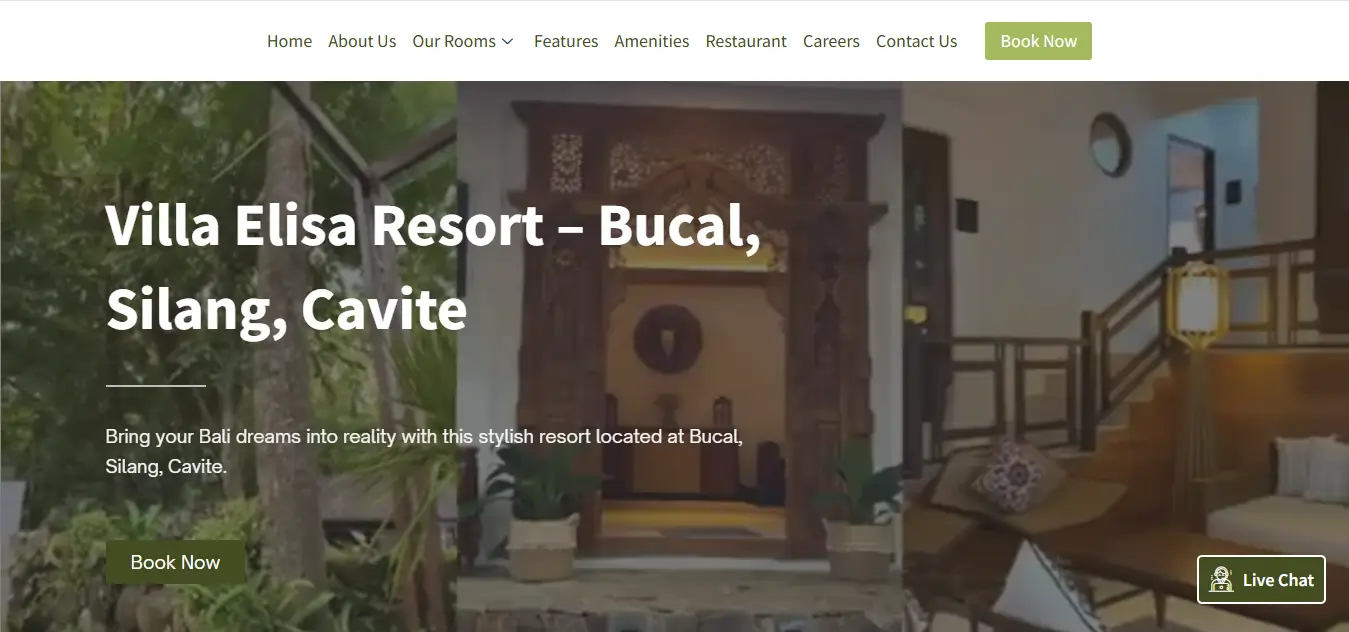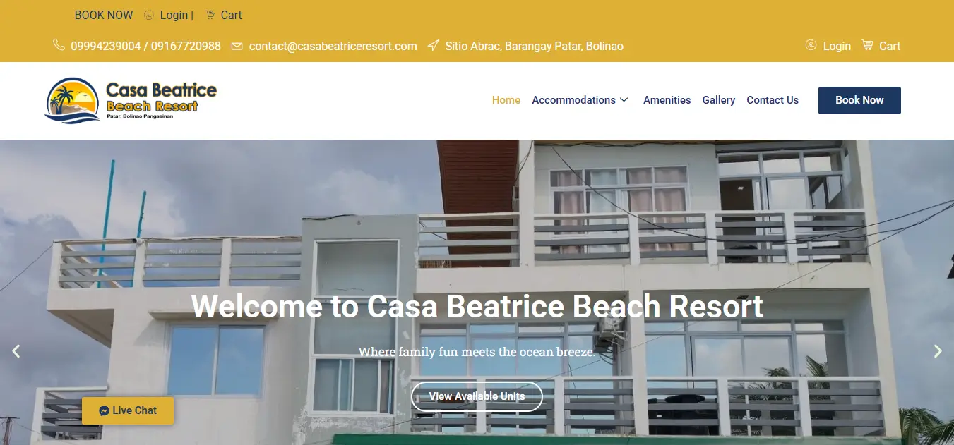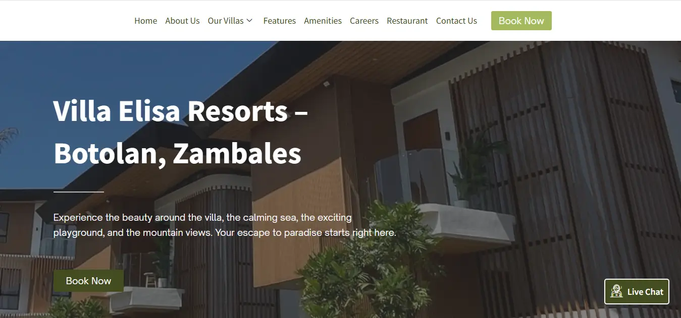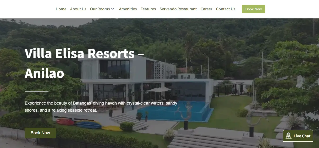 Modern website for a resort and accommodation business in the Philippines. Designed to showcase amenities and increase bookings.