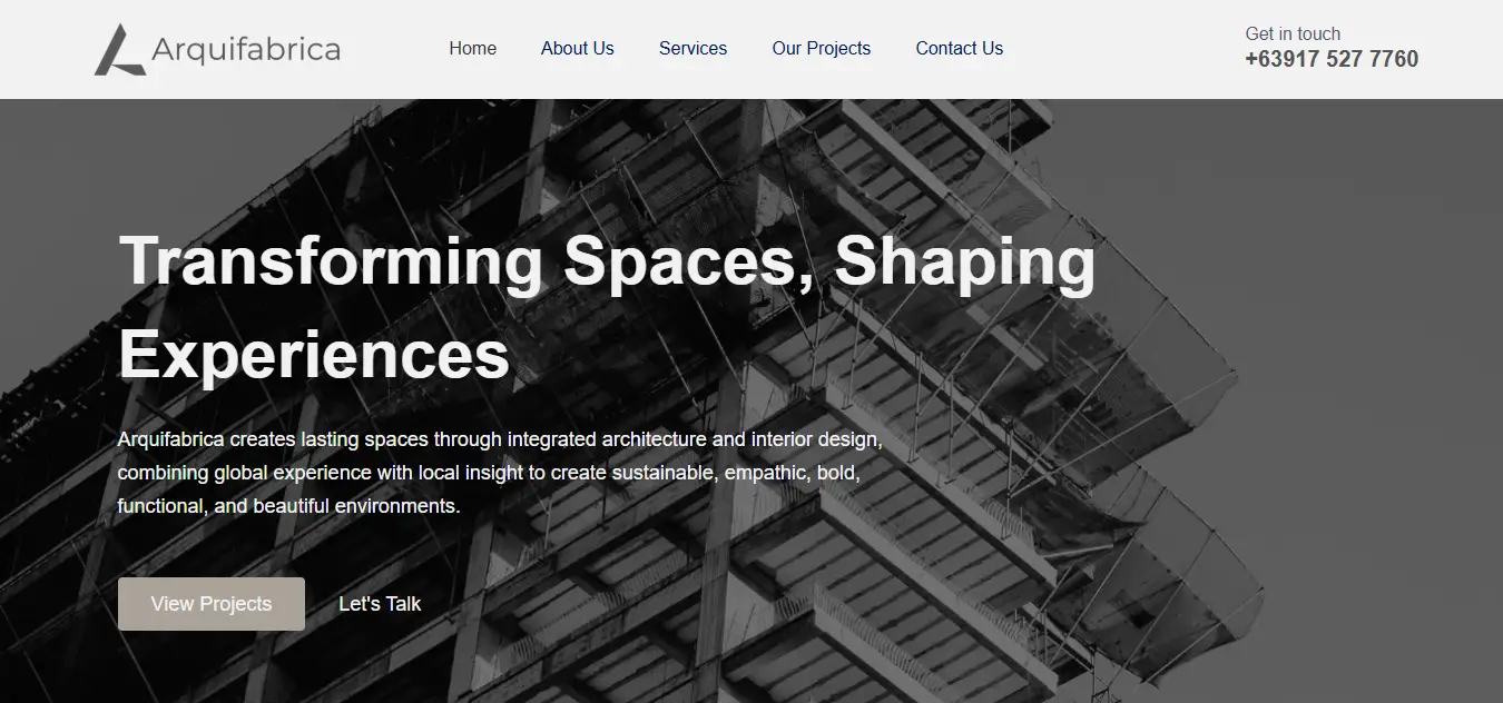 Modern website for an architectural design firm in the Philippines. Built to showcase projects and attract new clients through a clean, professional online presence.