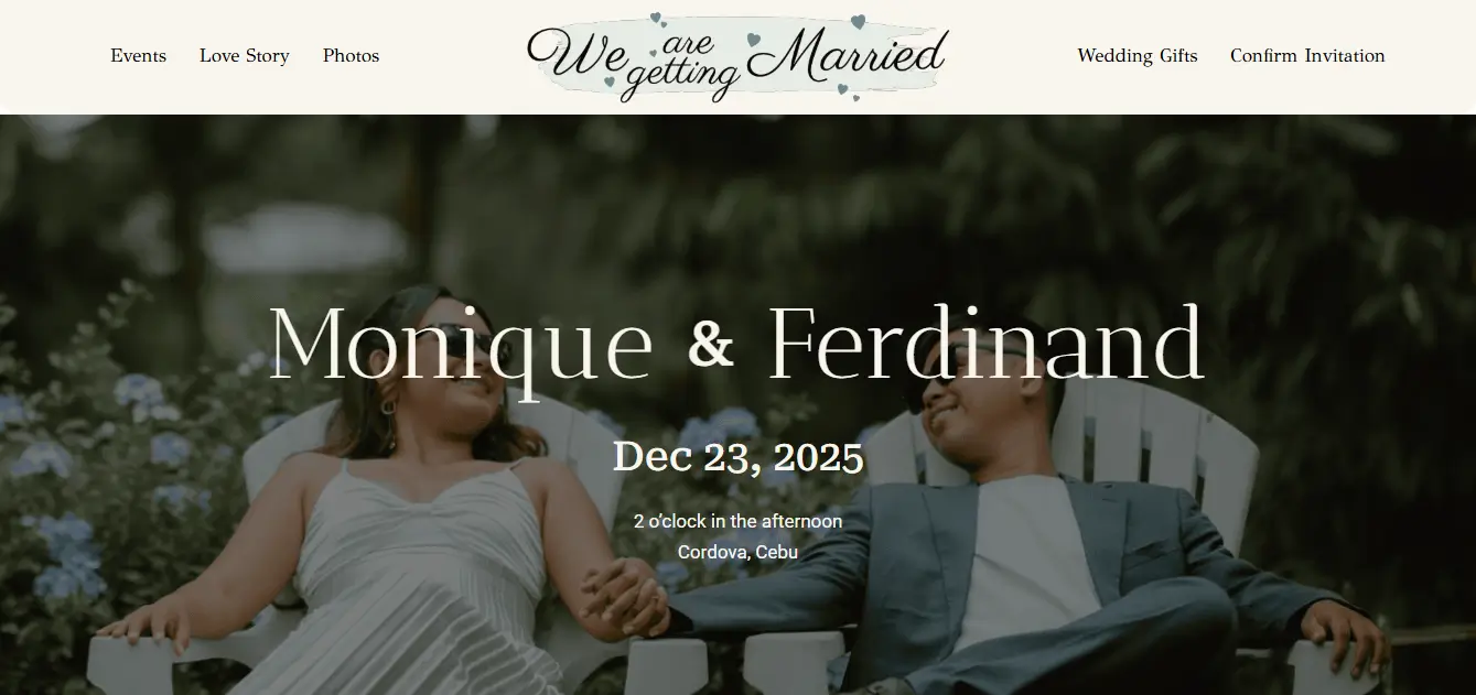 Modern website for a wedding and personal event page in the Philippines. Designed to share event details and create a memorable online experience.