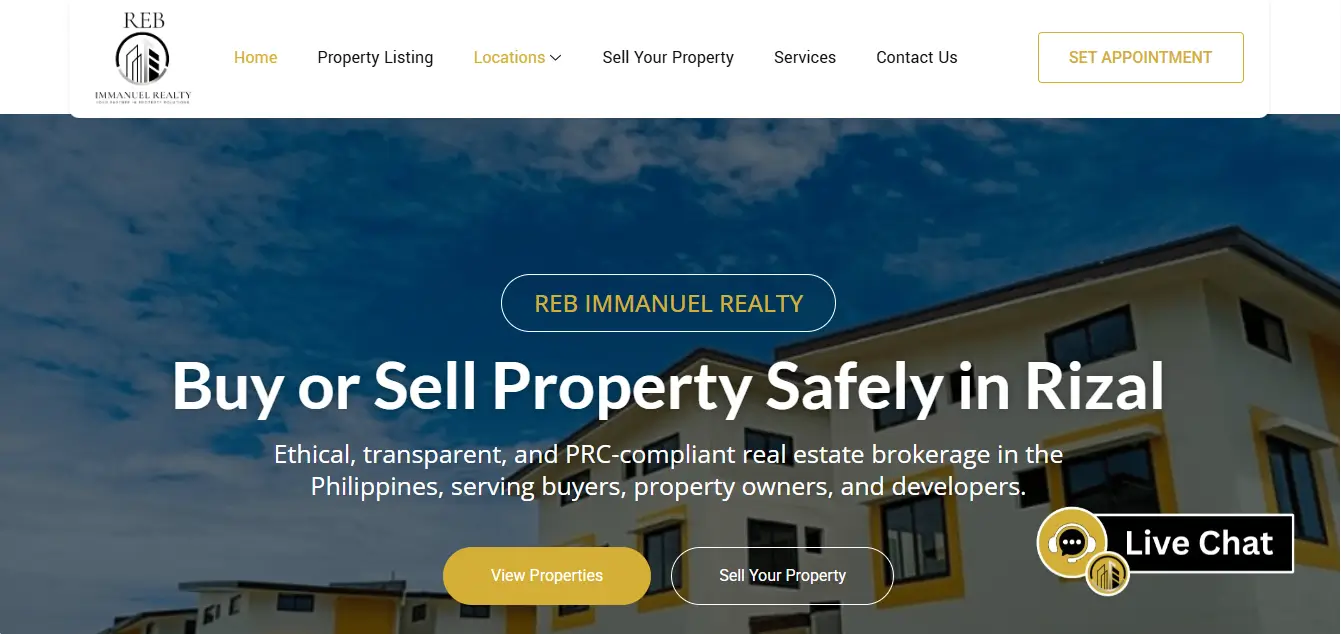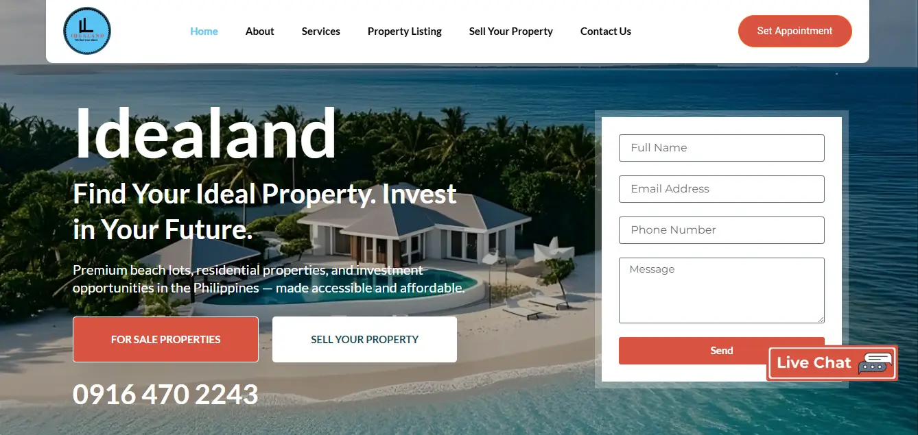 Modern website for a real estate listings and property marketing platform in the Philippines. Built to showcase properties and connect sellers with buyers.