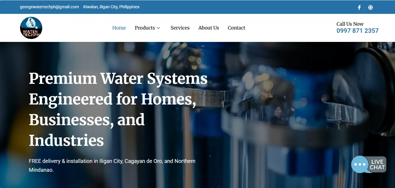 Professional website for a water treatment and filtration company in the Philippines. Designed to promote solutions and generate more customer inquiries.