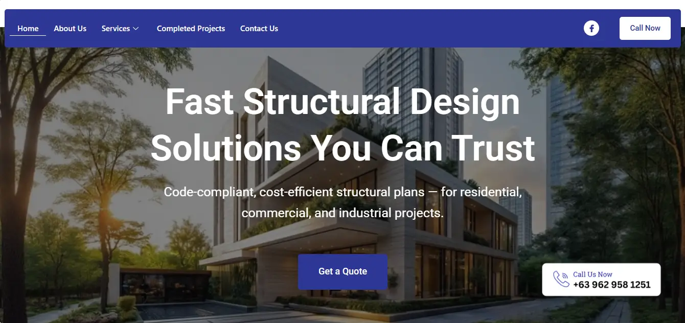 Professional website for a structural engineering services company in the Philippines. Designed to showcase expertise and attract more project inquiries.