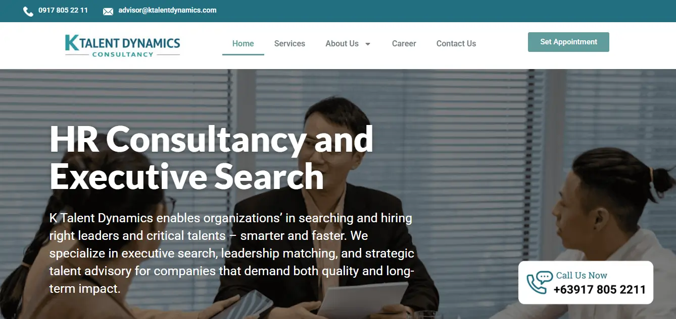 Modern website for a recruitment and talent solutions company in the Philippines. Built to connect businesses with top talent and generate more client inquiries.