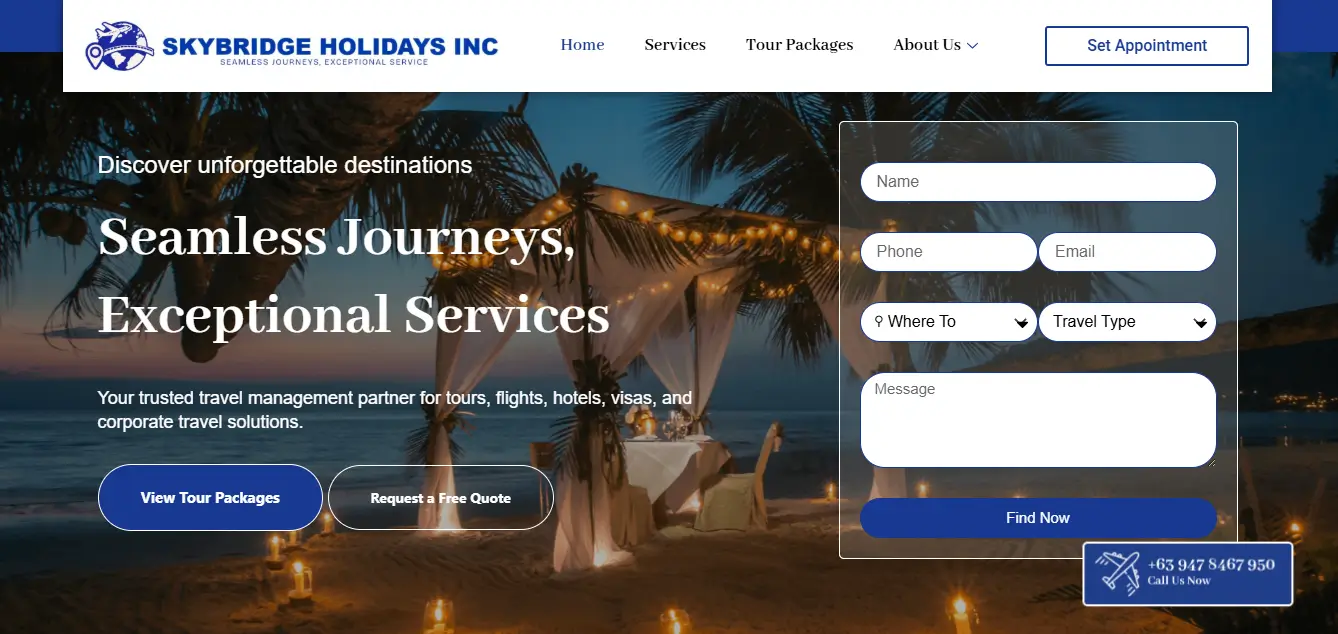 Professional website for a travel and tours company in the Philippines. Designed to promote services and increase booking inquiries.
